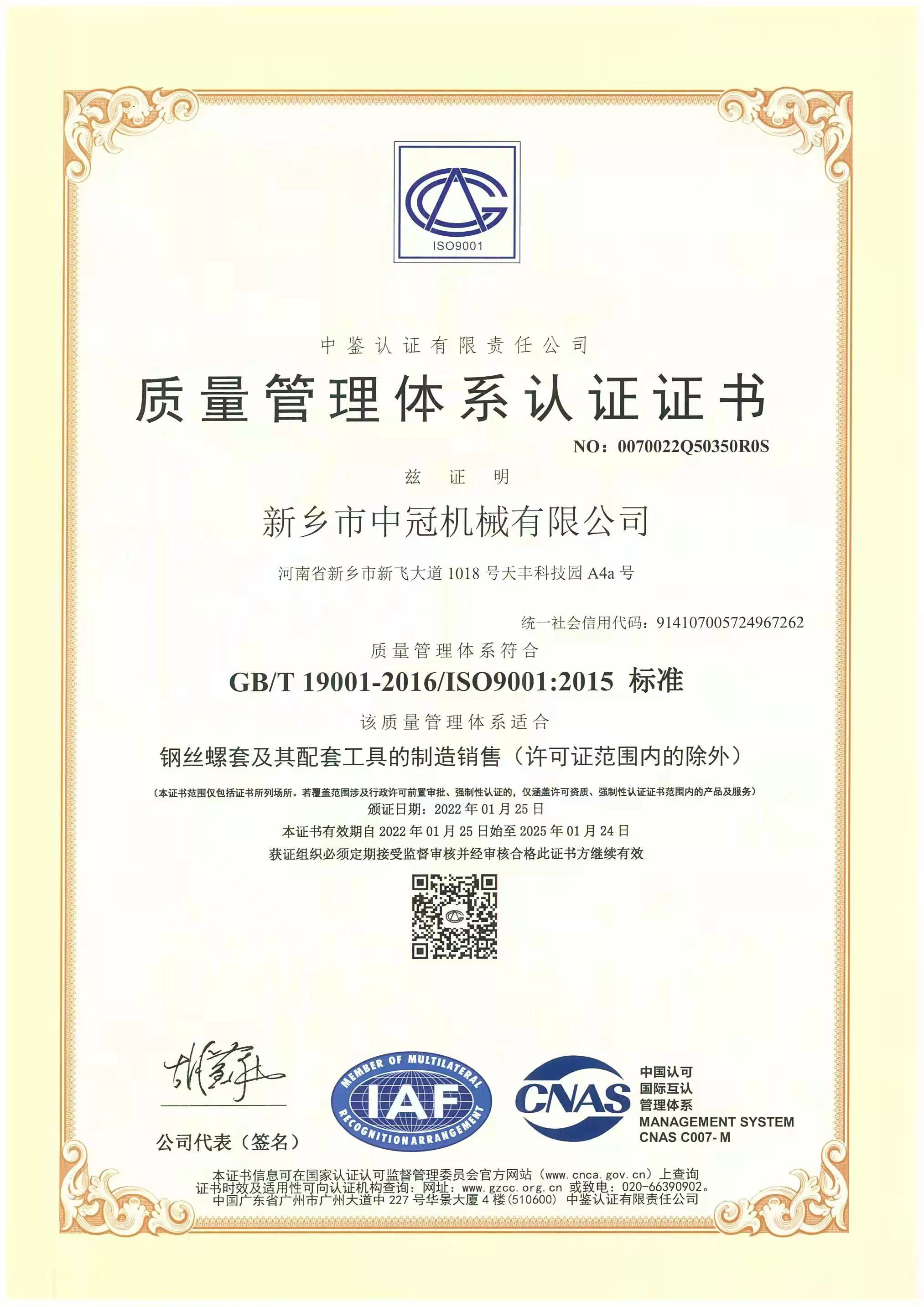 新鄉市中冠機械有限公司是從事鋼絲螺套產品及配套安裝工具技術研發(fā)、產品制造和銷售,并為客戶提供螺套使用全過程技術支持和服務的自動化制造型企業。
